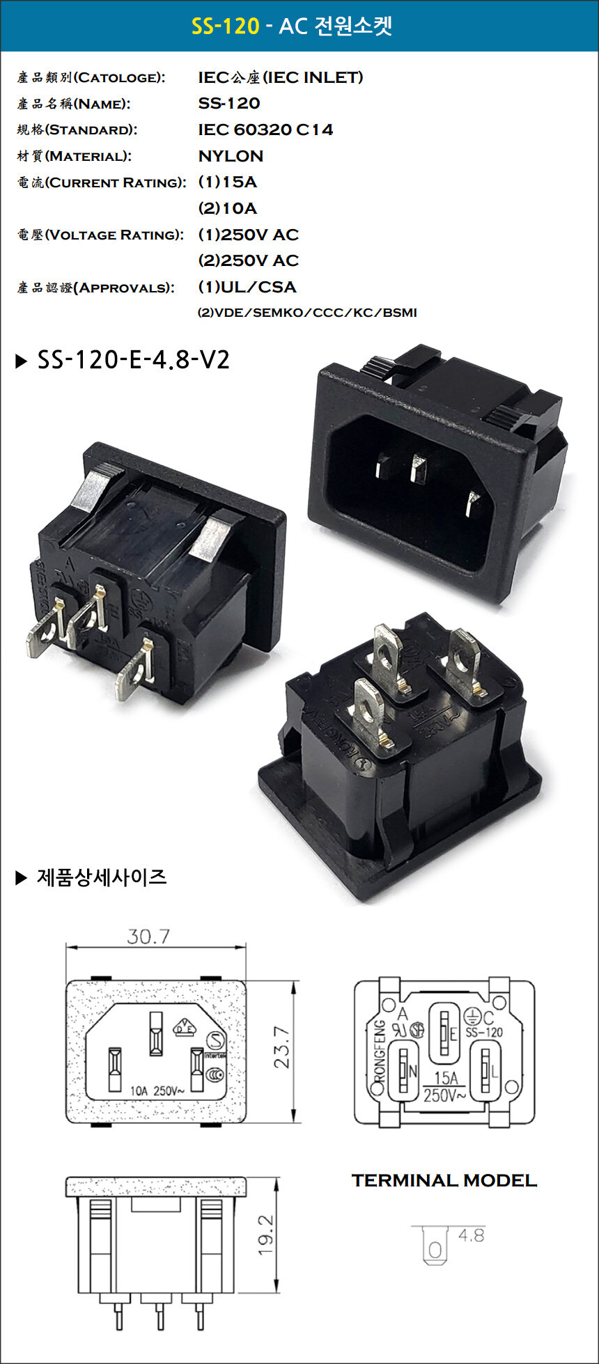 | RONGFENG IEC 60320 C20 INLET SS-3A-PBT-6.3 KC인증 HJ-00275 (0) | 2022.04.01 |